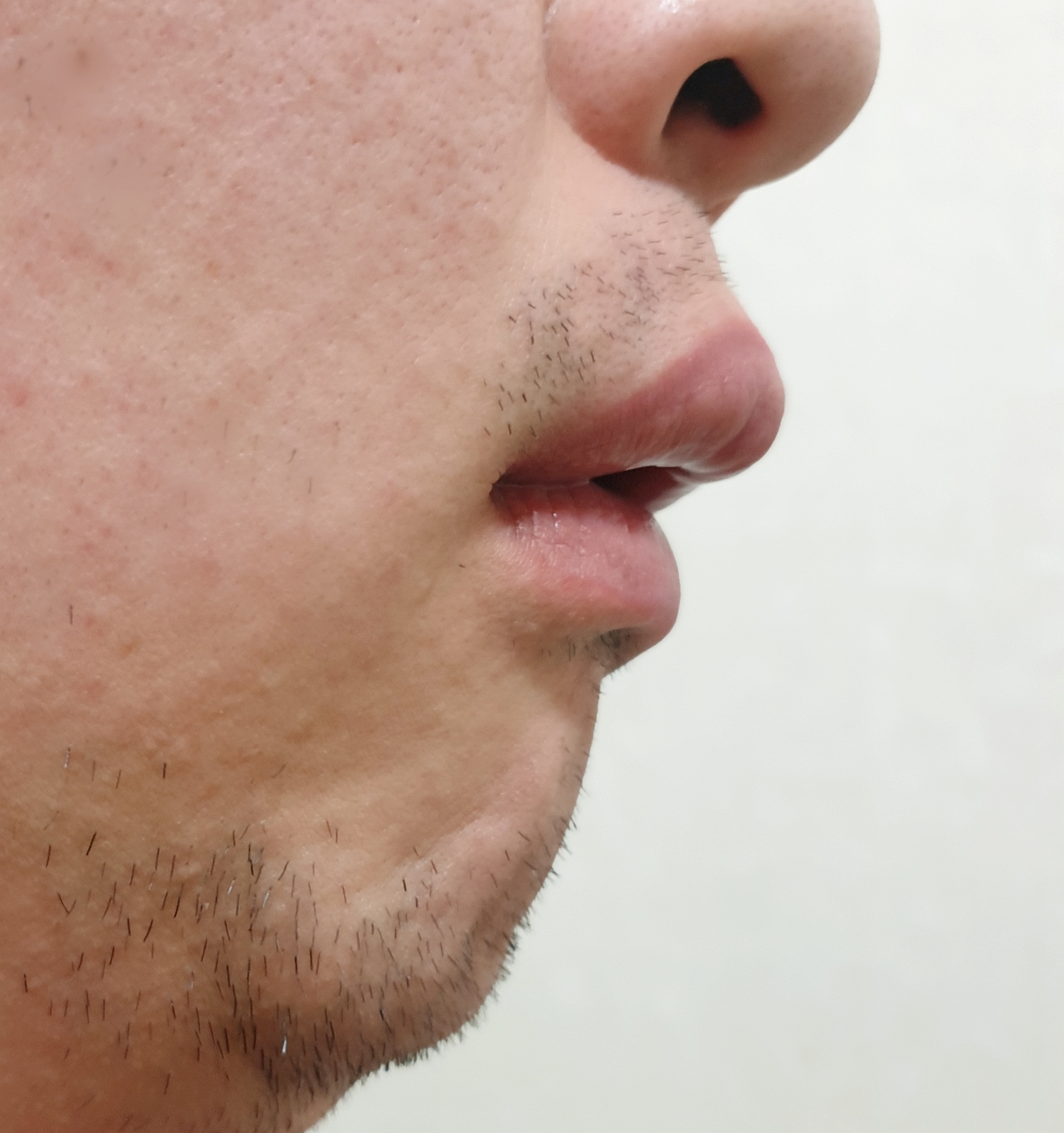 무턱(short chin)은 턱끝이 입술 아래에서 나와있지 않고 입보다 안쪽으로 들어가서 처져있는 형태이다.